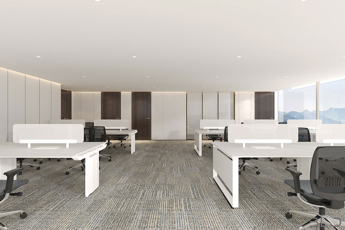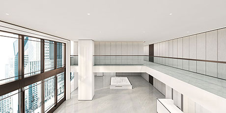 辦公樓現(xiàn)代的空間設(shè)計,自然光照的充分利用、人的心理舒適程度以及空間與人的交互感,都是華翔綠地現(xiàn)代辦公空間環(huán)境設(shè)計中要遵循的重要方面。空間視覺效果開敞,空間自然光照利用充分,空間界面友好,人與環(huán)境的交互化 體驗效果更好,當(dāng)然,也有力契合了恒力集團(tuán)的團(tuán)隊文化。