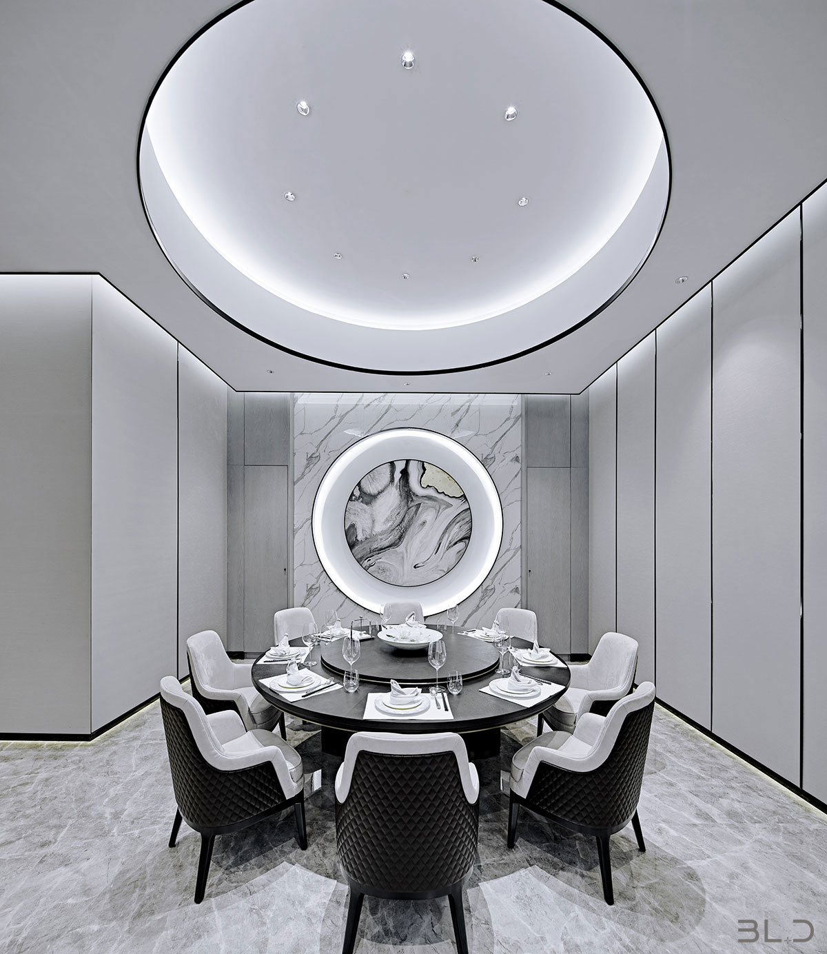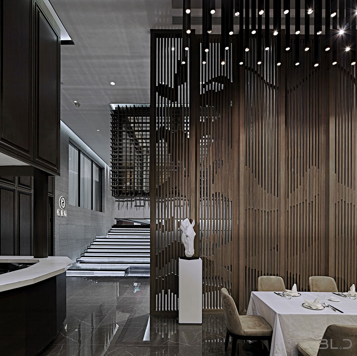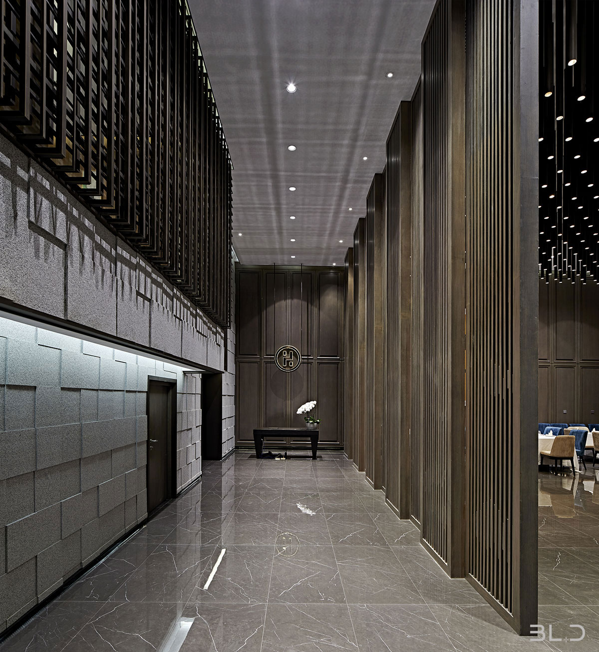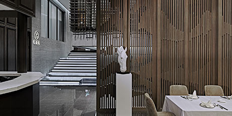 智薈軒餐飲會(huì)所地處京城繁華的三里屯,如何在娛樂(lè)與餐飲消費(fèi)競(jìng)爭(zhēng)激烈之地、通過(guò)設(shè)計(jì)的語(yǔ)言傳遞會(huì)所的獨(dú)特之處,是擺在設(shè)計(jì)師面前的一場(chǎng)考驗(yàn)。BLD上水設(shè)計(jì)事務(wù)所創(chuàng)始人兼主創(chuàng)設(shè)計(jì)師伽馬先生以餐廳定位本身考慮分布、適 度、構(gòu)成、類型和特性,探索心造的歷程,回歸形式的本質(zhì)。在結(jié)構(gòu)的啟示中尋找最為真實(shí)的靈感,在古典秩序的權(quán)威和非對(duì)稱形式的活力之間,尋找平等和恰如其分的格式問(wèn)題。