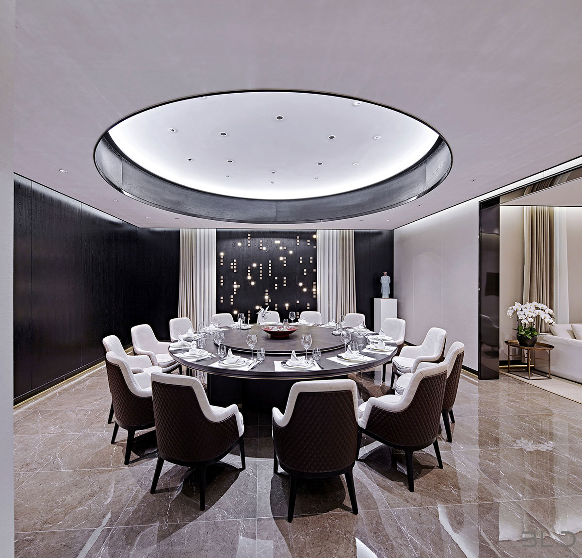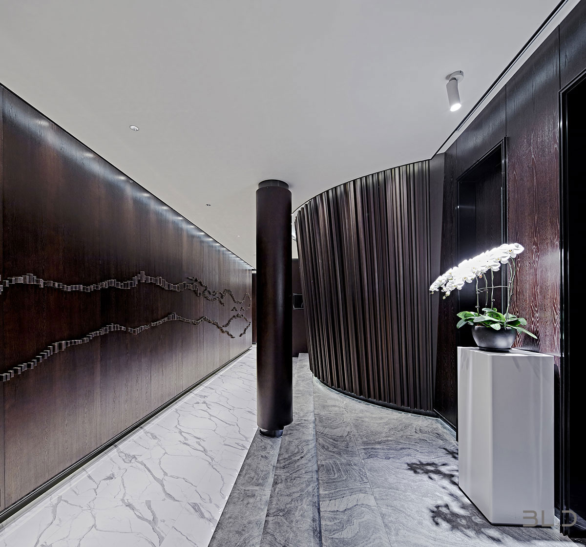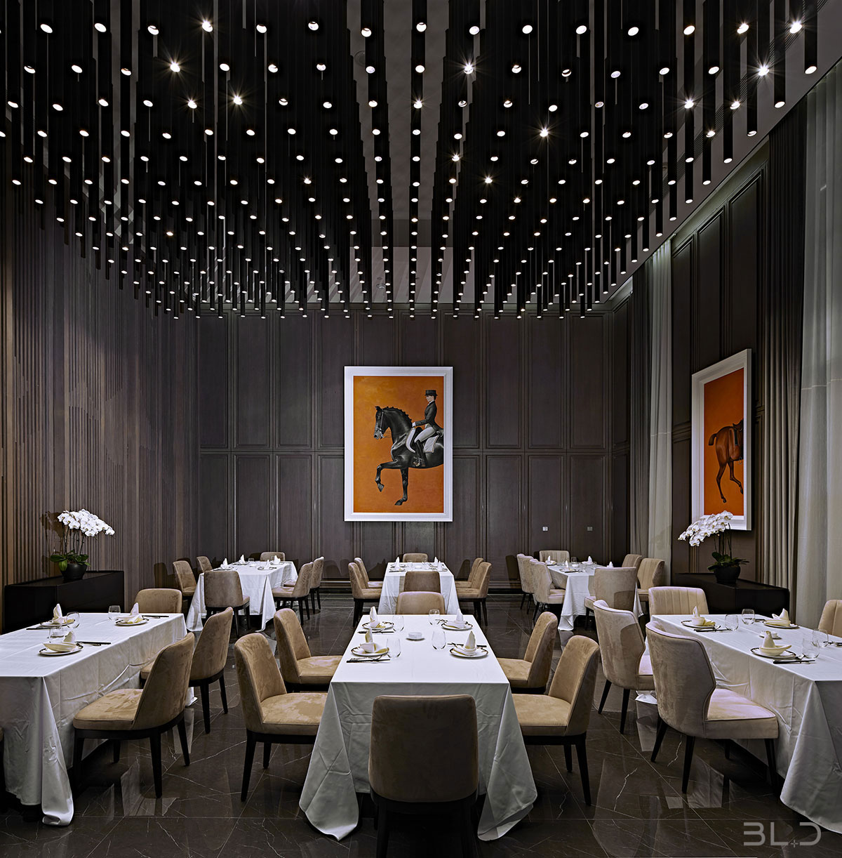 智薈軒餐飲會(huì)所地處京城繁華的三里屯,如何在娛樂(lè)與餐飲消費(fèi)競(jìng)爭(zhēng)激烈之地、通過(guò)設(shè)計(jì)的語(yǔ)言傳遞會(huì)所的獨(dú)特之處,是擺在設(shè)計(jì)師面前的一場(chǎng)考驗(yàn)。BLD上水設(shè)計(jì)事務(wù)所創(chuàng)始人兼主創(chuàng)設(shè)計(jì)師伽馬先生以餐廳定位本身考慮分布、適 度、構(gòu)成、類型和特性,探索心造的歷程,回歸形式的本質(zhì)。在結(jié)構(gòu)的啟示中尋找最為真實(shí)的靈感,在古典秩序的權(quán)威和非對(duì)稱形式的活力之間,尋找平等和恰如其分的格式問(wèn)題。