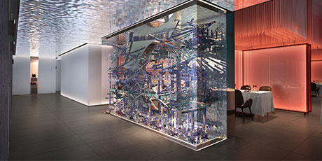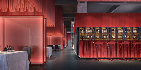 在設(shè)計(jì)案中,設(shè)計(jì)師伽馬先生對(duì)霧化玻璃、枯山水、紅色樓梯等細(xì)節(jié)元素的調(diào)度與駕馭,信手拈來(lái),合轍押韻。多一分浮夸油膩,少一分寡淡無(wú)韻。尊重功用的前提下,拆解品牌意蘊(yùn),融入專(zhuān)業(yè)設(shè)計(jì),接地氣,不拖沓,引導(dǎo)花家怡 園新京菜神魂入位,是設(shè)計(jì)師伽馬先生“見(jiàn)山是山,見(jiàn)山不是山”之后的從容與沉淀。