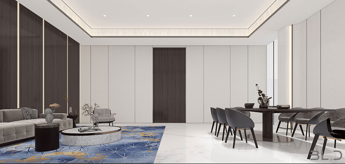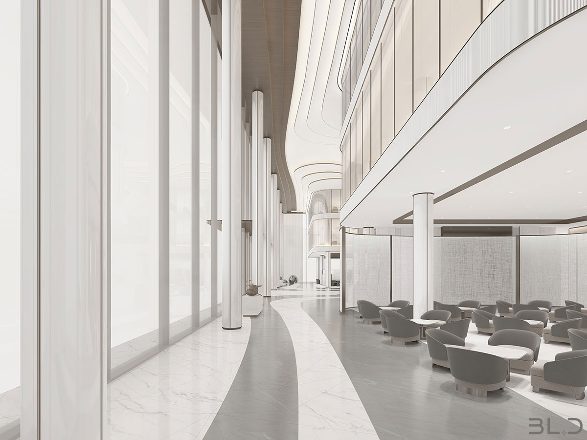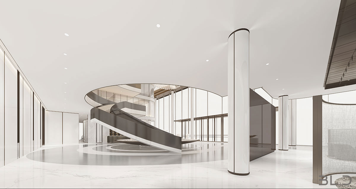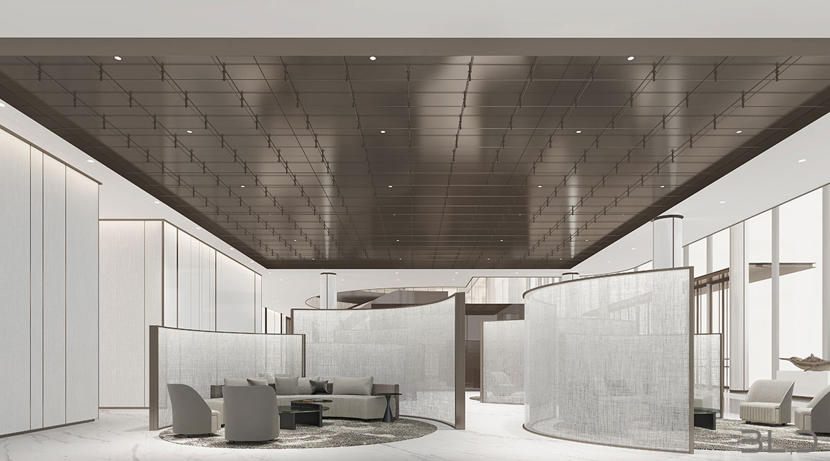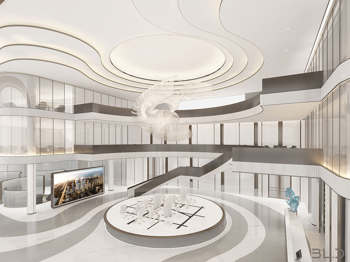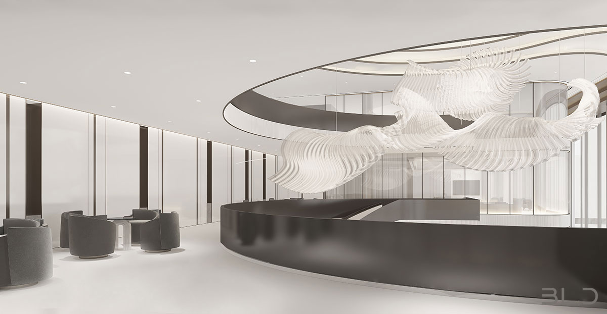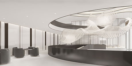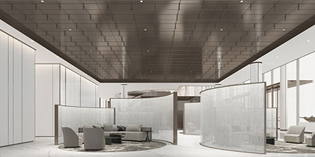 “唯天下至誠(chéng),為能盡其性?!辟ゑR先生深耕設(shè)計(jì)領(lǐng)域多年,在項(xiàng)目設(shè)計(jì)中善于融入對(duì)企業(yè)品牌與商業(yè)邏輯的理解,用設(shè)計(jì)的語(yǔ)言代替企業(yè)品牌與消費(fèi)者交流。售樓處大堂內(nèi)的藝術(shù)裝置,光影流轉(zhuǎn),將“光”與“雨”的意境鋪陳, 稀釋了大空間帶來(lái)的空曠感。半透光弧形隔斷,將動(dòng)靜區(qū)域劃分,為洽談區(qū)營(yíng)造一定私密性。行動(dòng)路線,接待、展示、洽談、簽約,動(dòng)線一氣呵成,貼合銷(xiāo)售路徑,輔助空間使用功能延展。內(nèi)部辦公區(qū)域線條簡(jiǎn)潔,功能聚焦。