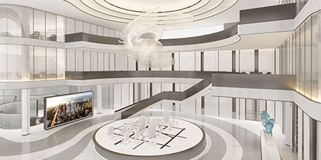 項(xiàng)目所處的地塊位于蘇州吳江太湖新城,是吳江近幾年最大體量的商業(yè)地塊。樓盤(pán)整體業(yè)態(tài)囊括商業(yè)、公寓、寫(xiě)字樓、研發(fā)等,是蘇州灣核心區(qū)域內(nèi)的又一地標(biāo)性項(xiàng)目。對(duì)于如此大體量又極具戰(zhàn)略意義的項(xiàng)目售樓處,開(kāi)放商對(duì)于設(shè) 計(jì)師及團(tuán)隊(duì)的甄選可謂慎之又慎。
